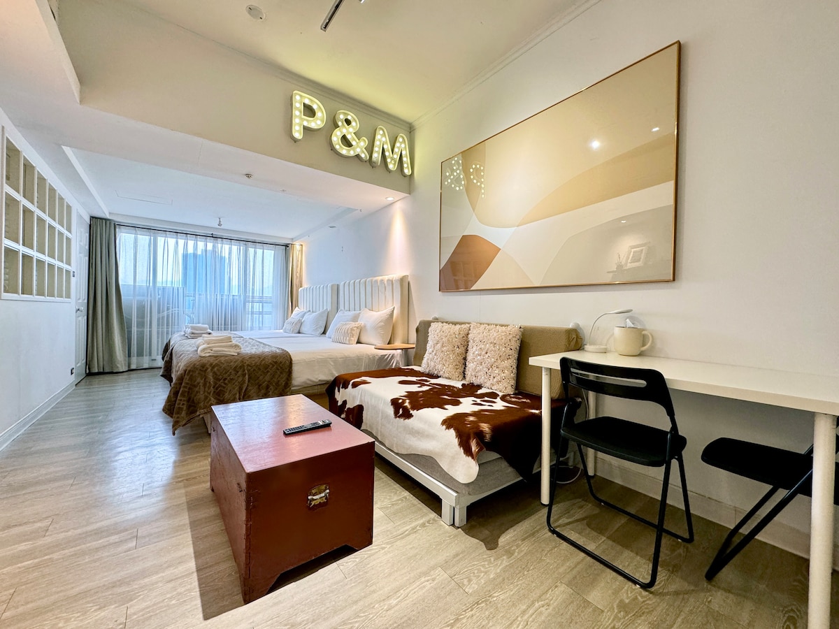 La casa se encuentra en el animado y conveniente Guting MRT, caminando por el famoso distrito de negocios "Shida Night Market", deliciosos aperitivos taiwaneses, cafeterías de moda, etc.; ¡también puedes caminar hasta el parque Keti y caminar hasta el parque verde!¡Excelente ubicación para una gran escapada fuera de la red en la ciudad de cemento de Taipéi! MRT: Green Line, Yellow Line Situado en el centro del importante centro de transporte de North City A 10-15 minutos a pie, a 10-15 minutos a pie de la línea del aeropuerto de Taoyuan, "Guting Station". Muy fácil de llegar a cualquiera de las principales atracciones de Taipéi Número de huéspedes: 4 La casa es rica en espacio de diseño, edificio de ascensores de alta gama, no tienes que preocuparte por el manejo de equipaje, decoración cómoda de alta gama, para crear una cómoda casa de textura de estilo coreano, un dormitorio, una sala de estar, un comedor, un baño. En la sala de estar, hay una cama queen en la habitación, la habitación puede alojar a cuatro adultos; mientras entretenida, la habitación puede cerrar la puerta de la habitación sin perturbar la calidad del sueño; con velocidad de Internet de alta velocidad gratuita para su uso comercial, así como películas y películas de Disney + y 100 programas de televisión, lo que le da un entorno de vida cómodo y conveniente y un edificio residencial de alta gama, con seguridad del edificio, seguro y de alta calidad para su estancia. Aspectos que debes tener en cuenta - Servicio de almacenamiento de equipaje ‘No’, puede guardar su equipaje en MRT "Ancient Pavilion Station" Ancient Pavilion "!(Airport Express)