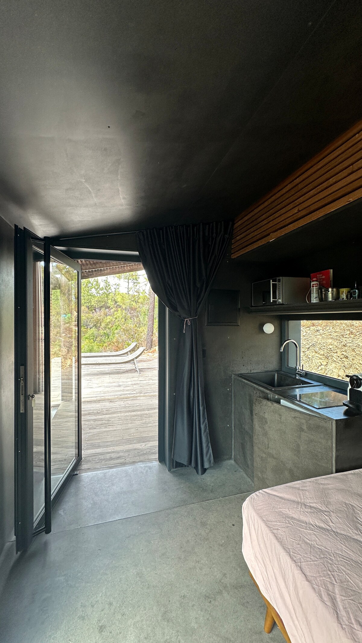 En lo profundo de un bosque, Bublina te da la bienvenida para vivir una experiencia fuera de lo común. Aislada en la mayor intimidad, esta burbuja ecológica transparente está amueblada cálidamente con el mayor confort para una noche de descanso bajo las estrellas. Acompañada de su baño con techo transparente y su solárium con vistas panorámicas, cada lugar le permitirá disfrutar del cielo y la tranquilidad a cualquier hora. Acuéstate en una cama king size, apaga las luces y déjate llevar por las estrellas.