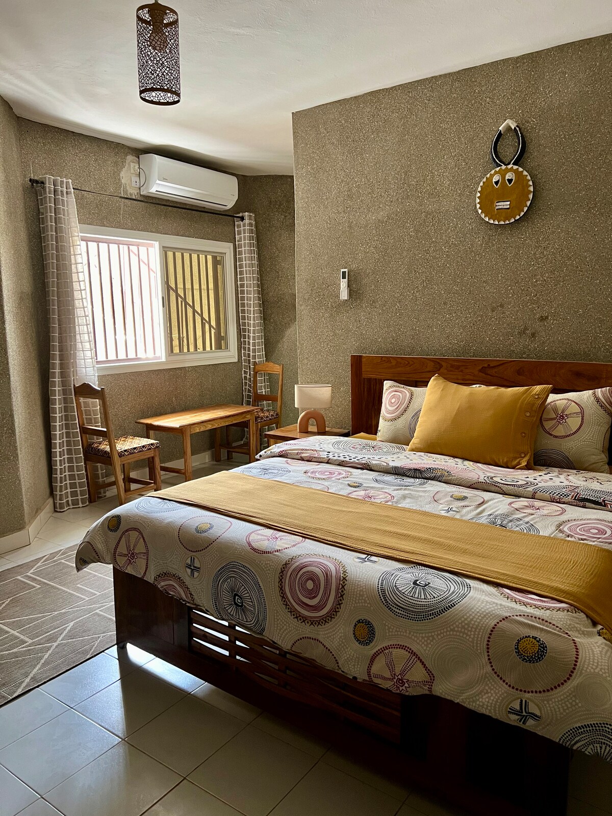 🏡 Charmant Appartement F2 accessible situé au coeur de Ziguinchor dans le quartier paisible et résidentiel de Goumel. Idéal pour les professionnels, vacanciers, touristes à la recherche d’un lieu confortable et pratique avec un emplacement central. Le logement comprend : 🛏️ Chambre climatisée avec lit double, armoire 🛋️ Salon lumineux avec Télé, table à manger 🍳 Cuisine équipée: réfrigérateur, micro onde, cuisiniere avec four, chauffe eau, ustensiles 🚿 Salle de bain 🌐 Wi-Fi gratuit