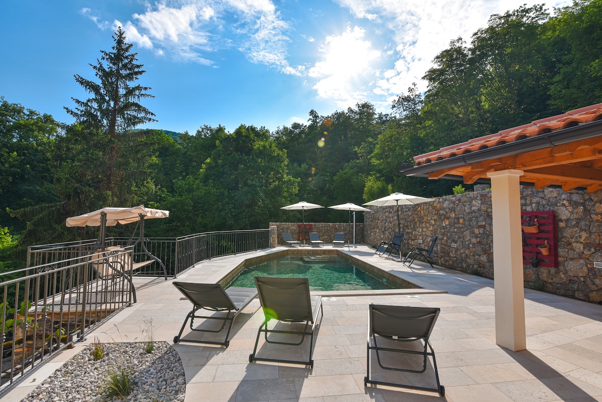 Esta casa de piedra centenaria, restaurada con amor, se encuentra en las laderas de Učka, cerca de Opatija. La arquitectura tradicional con detalles de piedra y madera crea un ambiente auténtico, mientras que la naturaleza que la rodea ofrece un escape ideal de la vida ajetreada. La casa fue completamente renovada por las propias del propietario, incluidos los muebles hechos a mano. La chimenea de leña se suma a la comodidad y la calidez del espacio. Piscina exterior rodeada de vegetación, ofrece total intimidad.