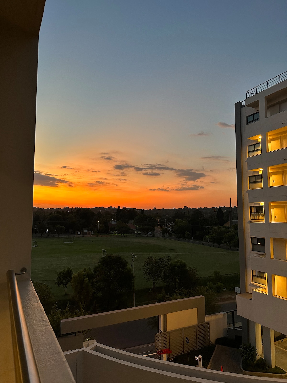 Disfruta de una experiencia con estilo sin cortes de energía en este departamento céntrico. Con dos patios con vistas panorámicas al este de Pretoria. Cuenta con 1 dormitorio, una cocina moderna con microondas, un televisor inteligente de 75pulgadas, una zona de estar y un baño con una ducha. Esta unidad está situada en Pretoria, cerca de Atterbury Boulevard, a poca distancia del centro comercial Menlyn Maine y del Time Square Casino. La piscina y el restaurante de la azotea están cerrados por reformas hasta finales de octubre de 2025.